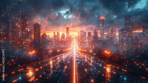 Fototapeta premium A futuristic energy grid powered by renewable sources such as solar and wind