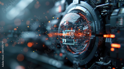 Fototapeta premium A futuristic energy shield with a neon green checkmark deflecting attacks.