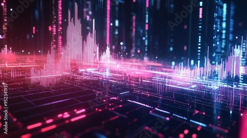 Naklejka premium A futuristic financial graph with digital elements and rising lines, symbolizing growth in a modern business environment.