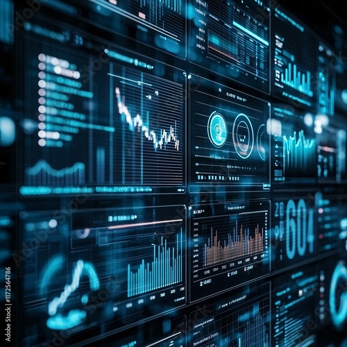 © Achirawee, Obraz premium A futuristic financial interface with predictive analytics graphs for investment forecasting