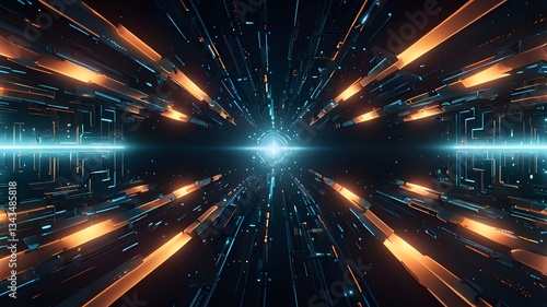 © JohnnyMohAzar, Fototapeta premium A futuristic floating geometric pattern with a soft glow