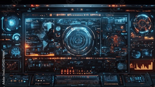 © Turab, Obraz premium A futuristic globalization interface showcasing science and technology abstract graphics.