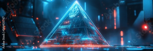 Obraz premium A futuristic glowing pyramid structure in a high-tech digital environment at...