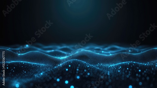 © Sampao, Fototapeta premium A futuristic glowing technology symbol floating in a dark digital space, representing innovation, AI, and data connectivity.
