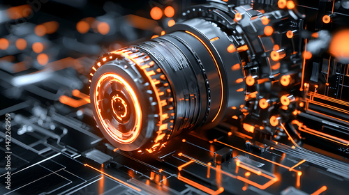 Fototapeta premium A futuristic high-tech device glowing with orange light. Perfect for sci-fi visualizations or representing advanced technology concepts. Use in projects about innovation.