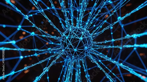 Obraz premium A futuristic, high-tech illustration featuring a sprawling network of interconnecting nodes, glowing with neon blue