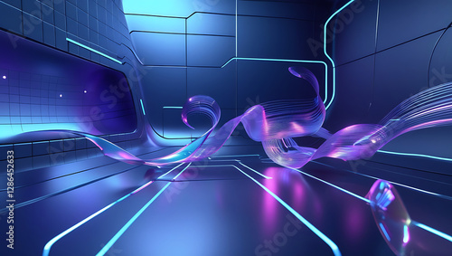 Naklejka premium A futuristic, high-tech motion background with sleek, metallic surfaces, neon-lit circuits, and holographic accents that shimmer and undulate in a mesmerizing rhythm, created by generative ai