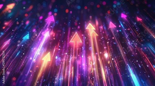 © SyabilaSyifa, Fototapeta premium A futuristic holographic graph soaring upwards with bright glowing arrows