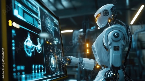 Fototapeta premium A futuristic humanoid robot interacting with a holographic display in a...