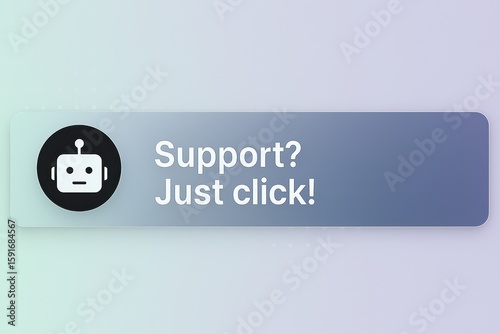 © Diclonius, Obraz premium A futuristic interface displays a user-friendly call to action, inviting engagement with a support bot. Clean design and informative text convey immediate assistance. customer support service
