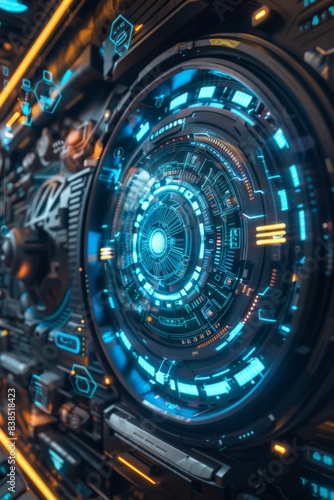 Fototapeta premium A futuristic looking computer screen with glowing lights and neon, AI