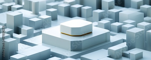 © HERLINA_COLLECTIONS, Fototapeta premium A futuristic, minimalist 3D scene featuring a central object surrounded by geometric structures.