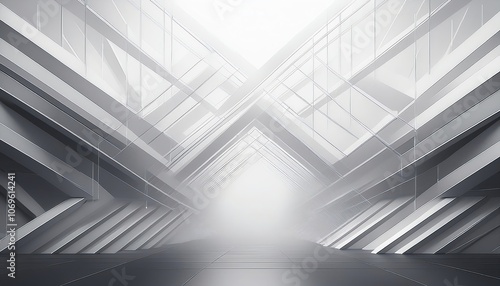 © Pastel, Obraz premium A futuristic, minimalistic corridor featuring metallic structures and bright light, creating a sense of depth and perspective.