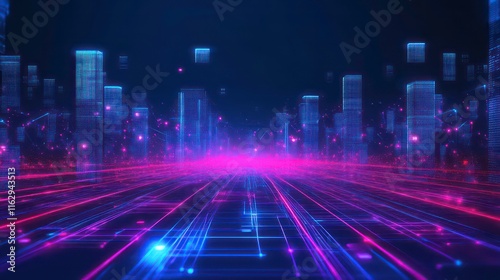 Fototapeta premium A futuristic neon wireframe design with glowing error text.