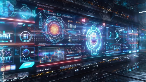 Fototapeta premium A futuristic rendering of a network management dashboard