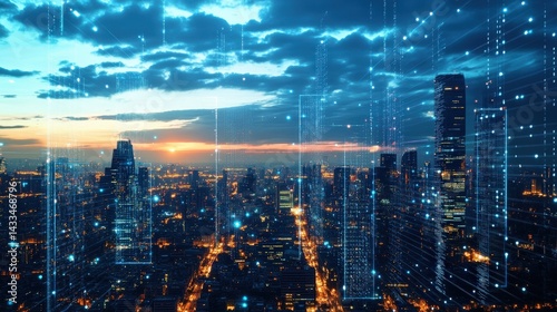Fototapeta premium A futuristic representation of a smart city powered by real-time data...