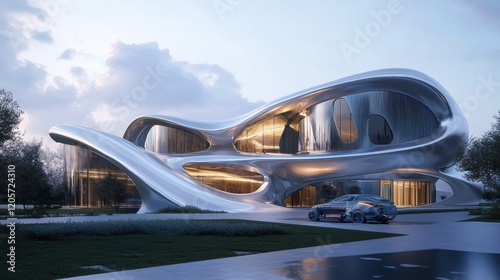 Obraz premium A futuristic research facility with metallic exteriors and advanced design