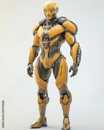 © Oxi, Fototapeta premium A futuristic robot with a sleek yellow and black design.