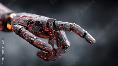 Naklejka premium A futuristic robotic hand with intricate circuitry and glowing elements,...
