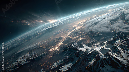 Fototapeta premium A futuristic satellite collecting climate data from Earth with glowing interface overlays.