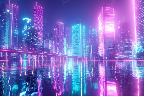 © typepng, Obraz premium A futuristic smart city concept idea based on a metaverse cyber concept. Innovation and advancement. Stock generated.
