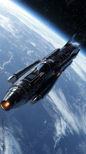 © projek, Obraz premium A futuristic spacecraft in orbit above Earth.