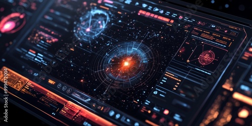 Fototapeta premium A futuristic tech interface with space-inspired design elements, including...