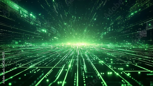 © Koplexs-Stock, Fototapeta premium A Futuristic Technological Data Visualization in Green Tones