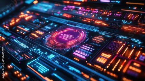 Fototapeta premium A futuristic technology interface with glowing neon lights and digital data.