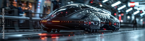 © Achirawee, Fototapeta premium A futuristic transportation system featuring autonomous vehicles and hyperloop technology illustrating the future of travel and digital transformation