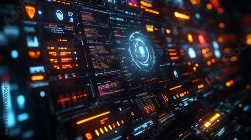 Obraz premium A futuristic user interface with glowing blue and orange digital elements.
