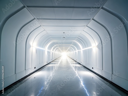 Obraz premium A futuristic white hallway with a glowing light at the end,white hallway with...