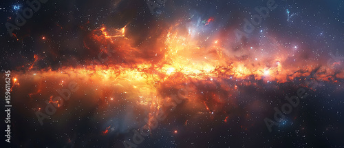 Fototapeta premium A galaxy in space is a vast, mesmerizing realm filled with endless wonders. It glows with billions of radiant stars, swirling in graceful, spiral arms. Nebulas shimmer in vivid colors, while dark matt