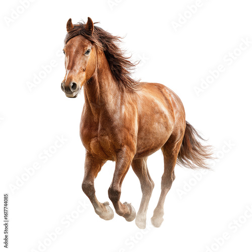 © Ryan, Obraz premium A galloping brown horse against a black background