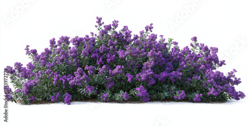 © MdJahangir, Naklejka premium A garden bush with purple flowers, cut out on a white background