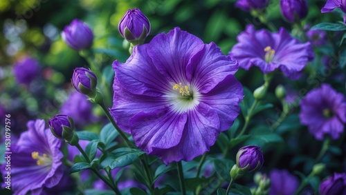 Fototapeta premium A garden featuring a purple lisianthus flower.