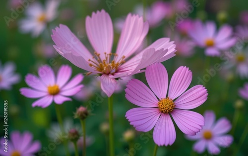 © Iqra, Obraz premium A garden filled with pink cosmos flowers in full bloom