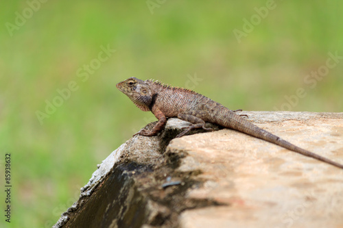 Fototapeta premium A garden lizard on a green background