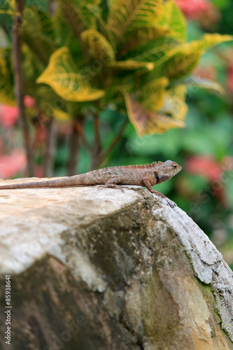 Fototapeta premium A garden lizard on a green background