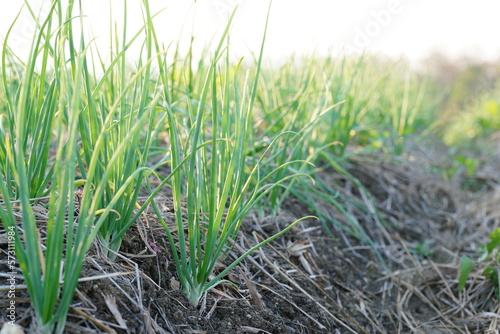 Fototapeta premium A garden where onions are planted in an agricultural plot
