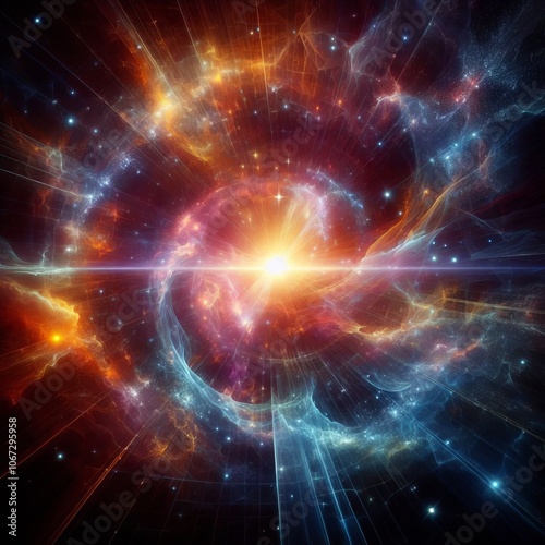 © Maksim, Fototapeta premium A gateway to the cosmos with holographic edges and celestial pat