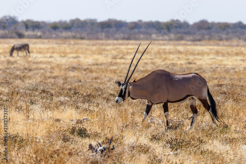 Fototapeta premium A gemsbok ( Oryx Gazella) walking at the savannah, Etosha National Park,...