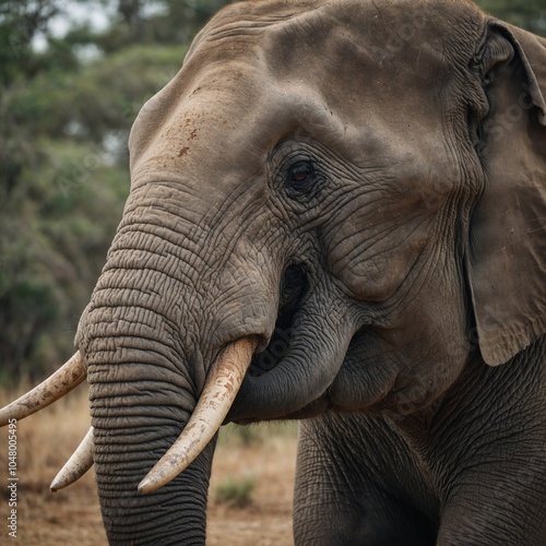 © Muhammad, Fototapeta premium A gentle elephant with its trunk raised, looking friendly.