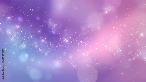 Obraz premium A gentle, ethereal backdrop featuring a soft gradation of purple and pink hues, sprinkled with glittering particles.