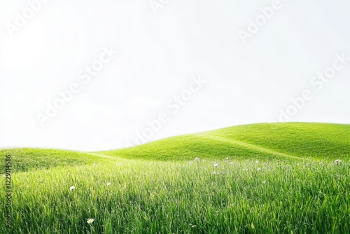 Naklejka premium A gentle green hill with wildflowers under a clear blue sky, representing the tranquility of nature and simplicity