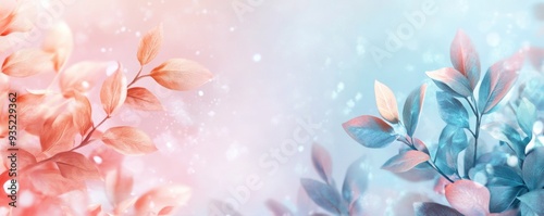 © Thi, Naklejka premium A gentle pastel gradient background adorned with a muted floral overlay.