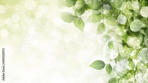 Fototapeta premium A gentle, soft-focus image featuring lush green leaves and a sparkling bokeh...
