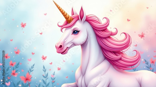 Fototapeta premium a gentle watercolor illustration of a magical unicorn with a flowing mane, in...