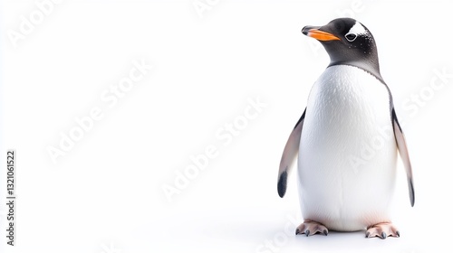 © ngamaz, Fototapeta premium A gentoo penguin stands against a white background