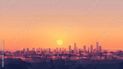 © Muhammad, Fototapeta premium A geometric cityscape at sunset, rendered in muted colors.